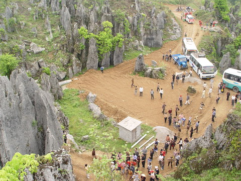 登上洛塔,只見連山綿谷,萬石如林,一塊塊青灰色的大石頭競高競秀,競美競奇,綿亙縱橫,層疊交錯,造型奇特,塔狀、蓮臺狀、羅漢狀、錐狀、刀狀、箭簇狀、帷幕狀等林立薈萃,像一個個神奇的迷宮,組成洛塔地質(zhì)公園的旖旎景觀。有的玲瓏斫剔,若女繡工鐫;有的嶙峋怪異,如鬼斧神鑿;有的崢嶸巉峻,似水墨丹青;有的嵯峨兀立,藤蔓纏繞,更像一株株挺拔的古樹。高的、矮的、大的,細(xì)的。粗、瘦、皺、滑,各具特色,如人之面目相具而無一相似者,在綠樹紅花間亮麗起一道道迷人的風(fēng)景。洛塔石林遍及整個山界,較集中的有楠竹水坪石林、梭洛趙家灣石林、八仙洞石林及公路沿線的銀河塔石林,僅水坪一帶的石林面積就達(dá)1000多畝。無論其規(guī)模面積,造型及組合情況,洛塔石林都可與云南石林媲美。