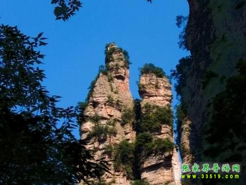 沿田家臺(tái)后坡石徑上行約400米,有一座依山而立的觀景臺(tái)。站立臺(tái)上,見(jiàn)對(duì)面200多米處兩峰相依,酷似一堆夫妻并肩而立,五官俱全,面向東南。那峰頂?shù)臉?shù)木花草恰似他倆的頭發(fā)、頭巾和頭飾,反襯出二人臉面白凈明晰。妻子?jì)尚。o傍其夫,低眉含羞,似竊竊私語(yǔ);丈夫粗狂豪達(dá),眉飛色舞,笑口張開(kāi),皓齒畢露,似充滿幸福和滿足。眾多游客觀此景時(shí)無(wú)不驚嘆稱奇,以致廣泛傳言:觀賞后,新婚夫婦忠貞不渝,老年夫婦煥發(fā)青春,反目夫婦重歸于好。