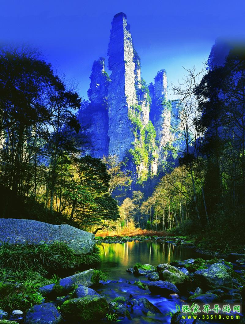 張家界國家森林公園位于湖南省西北部張家界市境內(nèi),是1982年由國務(wù)院委托國家計(jì)委批準(zhǔn)成立的中國第一個(gè)國家森林公園,1992年12月因奇特的石英砂巖大峰林被聯(lián)合國列入《世界自然遺產(chǎn)名錄》,2004年2月被列入世界地質(zhì)公園。公園自然風(fēng)光以峰稱奇、以谷顯幽、以林見秀。其間有奇峰3000多座,這些石峰如人如獸、如器如物,形象逼真,氣勢壯觀。峰間峽谷,溪流潺潺,濃蔭蔽日。有“三千奇峰,八百秀水”之美稱。公園不僅自然風(fēng)光壯美絕倫,而且森林植物和野生動(dòng)物資源極為豐富,森林覆蓋率達(dá)98%,是一座巨大的生物寶庫和天然氧吧,被稱為“自然博物館和天然植物園”。草木禽獸與奇山異水,同生共榮,形成完美的自然生態(tài)系統(tǒng)。