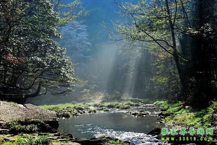 武陵源水繞山轉(zhuǎn),據(jù)稱僅張家界就有“秀水八百”,眾多的瀑、泉、溪、潭、湖各呈其妙。金鞭溪是一條十余公里長的溪流,從張家界沿溪一直可以走到索溪峪,兩岸峽谷對峙,山水倒映溪間,別具風味。水使山林更有生氣,金鞭溪是一條長長的溪流,有十幾公里長,從張家界沿溪一直可以走到索溪峪,它潺緩地流過紙草潭、跳魚潭、楠木坪和天子洲,最后由索溪峪注入澧水。兩岸峽谷對峙,紅巖綠樹倒映溪間。走在溪邊小徑上,一路清涼沁人心脾。踏木橋石階,觀花斑魚潭戲水,聽布谷鳥的叫聲在山谷間回蕩。
