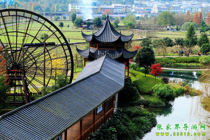 生態(tài)廣場共種植了近1600余株喬灌木,草皮、綠化工程共占地近3萬平方米,是廣場總面積的61%。香樟、桂花、紫薇等四季常青的樹木爭芳斗艷,是人們休閑時(shí)的綠色伴侶。田園風(fēng)光與綠化景觀交相輝映,隔游道相望,農(nóng)田近2萬平方米,集中在廣場東南部,水稻、玉米及各類果蔬與農(nóng)舍、家禽、和平鴿的融合,串連著鄉(xiāng)村小路,讓鄉(xiāng)野韻味達(dá)到了極致。水車、石磨,還有蒼勁的風(fēng)水樹仿佛將人們帶入了一個(gè)古老的世界,石拱橋、鐵索橋與斗拱建筑渾然一體,既有江南水鄉(xiāng)的柔美,又不失土家特色。