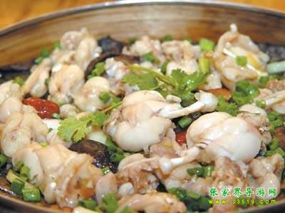華南湍蛙,又名石蛙,當(dāng)?shù)厣矫袼追Q“梆梆”,屬兩棲綱蛙科動(dòng)物,它是捕捉水蛇的能手。華南湍蛙平常生活在溪流石潭中,有時(shí)晚上上岸活動(dòng)。它與斑魚(yú)交配產(chǎn)子。華南湍蛙無(wú)論白天或黑夜,都能發(fā)出“梆梆”的叫聲,故俗名“梆梆”。華南湍蛙的肉十分細(xì)嫩鮮美,尤其燒湯,比雞湯還香甜。它營(yíng)養(yǎng)豐富,是名貴食品之一,也是待客的上品。