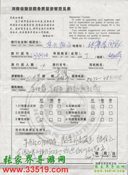 2009年7月28日吉林田先生一行14人接待質量反饋單: