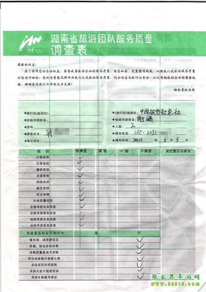 2011年8月3日蔣先生一行2人旅游質(zhì)量反饋