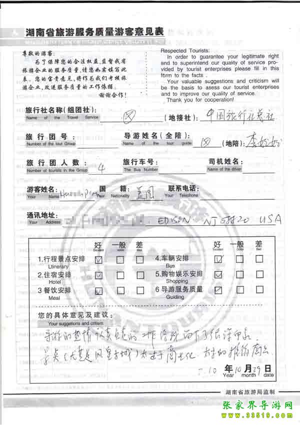 2010年10月29日美國Mr Pcm旅游旅游質(zhì)量反饋:導(dǎo)游認(rèn)真熱情,印象很深刻