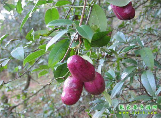八月瓜又名八月炸,木通和三葉木通的果實,野生果品。因八月果熟開裂而得名。果形似香蕉,富含糖、維生素C和12種氨基酸,以及人體不能合成的纈基酸、蛋氨酸、異亮氨酸、苯丙氨酸、賴氨酸等。果味香甜,為無污染的綠色食品,有“土香蕉”之稱。以天子山景區(qū)居多。索溪峪、楊家界等山麓谷地、林緣灌木叢中野生資源豐富。為上乘野果,現(xiàn)被有關部門列為重點開發(fā)項目。