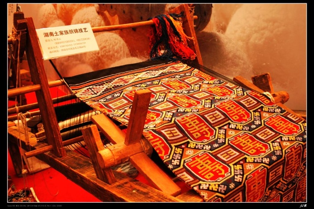 土家織錦的歷史悠久。早在漢代,它就初露頭角?!逗鬂h書(shū).西南蠻夷傳》記載,“武陵蠻織績(jī)木皮,染以草,衣裳斑斕……”清同治年間編修的《永定縣志》也說(shuō):“土錦績(jī)五顏經(jīng)線(xiàn)為之,文彩斑斕可愛(ài),使用以為被,或作衣裙,或作巾,故又稱(chēng)‘筒巾’。”